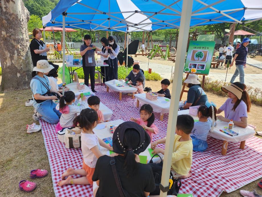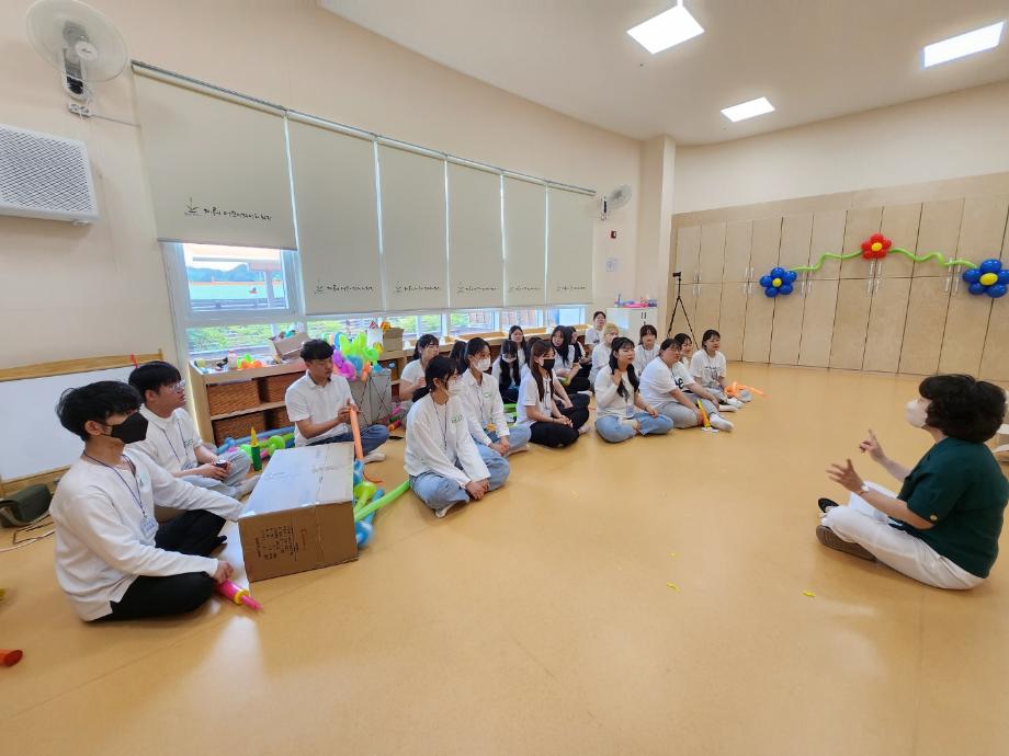 아동교육학과에서는 5월 가정의 달을 맞이하여 계룡시 어린이감성체험장에서 <개관 2주년 기념행사>에 참여, 체험부스 운영 및 봉사활동을 진행하였습니다. 지난 5월 20일(토)에 개최된 이날 행사에는 계룡시와 인근 지역에 거주하는 12세 이하 영유아와 어린이, 보호자 등 500여명이 찾아온 가운데 오전과 오후 2타임으로 나뉘어 ‘감성놀이 체험’, ‘숲속 놀이터 체험’, ‘레크리에이션 체험’, ‘대형 에어바운스 체험’, ‘짚풀공예 체험’, ‘감성 북크닉’, ‘모래놀이터’ 등의 다양한 체험 프로그램이 진행된 바 있습니다. 특히 재학생 20명은 어린이들과 보호자가 몸과 마음으로 함께하는 ‘레크리에이션 체험(알록달록 풍선놀이)’부스 운영 및 봉사활동을 펼쳐 어린이들로부터 좋은 반응을 얻었습니다. 엄마 아빠와 함께 즐겁게 뛰노는 아동들의 웃음소리에 행복한 하루였습니다.