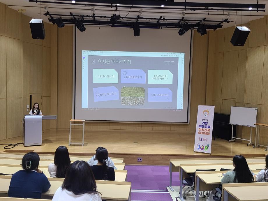 2024년 5월 30일 '보육교사의 삶, 함께 여행을 떠나다!' 라는 주제로 윤빛 어린이집 원감님의 특강을 진행하였습니다.