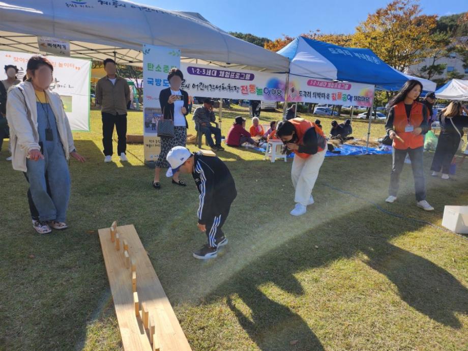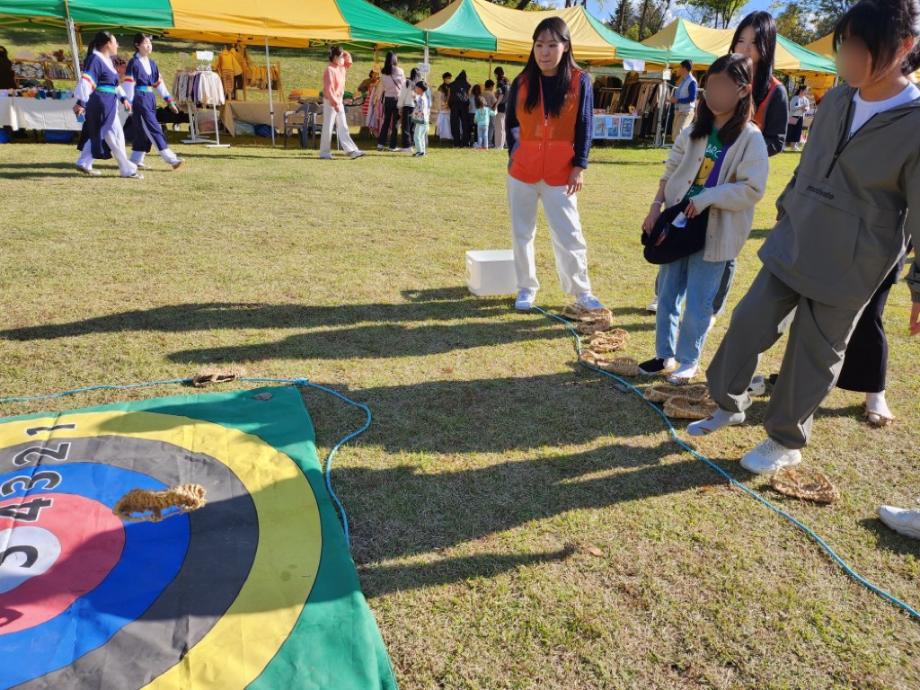 이중 마을과 함께하는 감성체험 (전통놀이) 부스에서 학생들이 신발 양궁놀이, 비석치기 등을 보조하였습니다 ☺ |