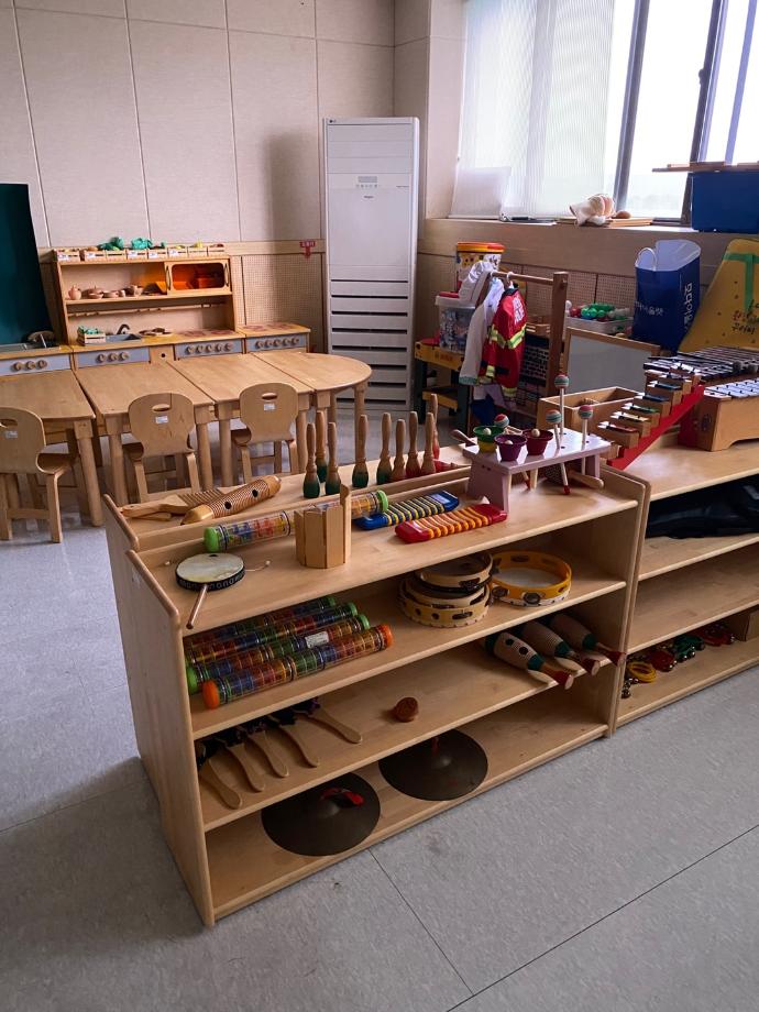 유아교육과 강의실은 모의 수업에서 사용할 수 있는 유아용 책상과 의자, 여러 종류의 음률 악기와 교구들이 비치되어 있습니다. 또한 이동식 의자와 책상이 있어 대부분의 전공 수업도 527에서 진행됩니다. |