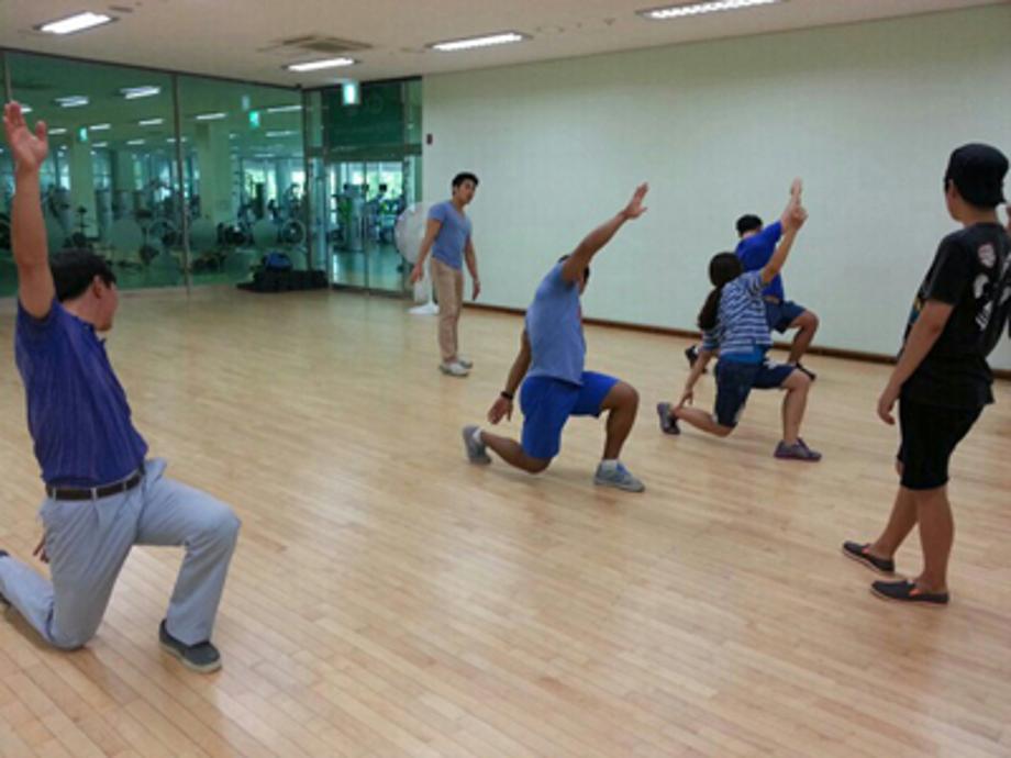 퍼스널트레이너 자격증 실기수업을 받는 모습입니다.