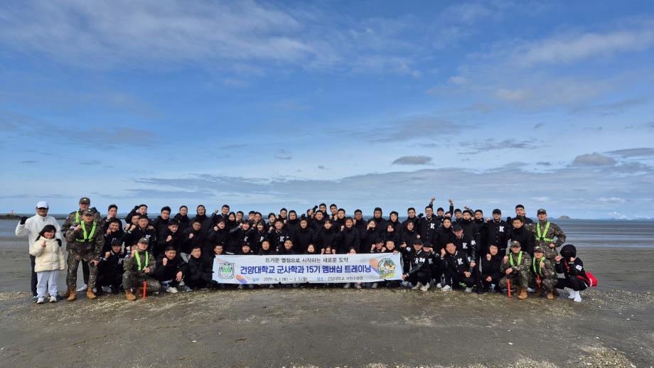 [2025학년도 군사학과 멤버십트레이닝] 1) 일 시 : 2025.03.01.(토) ~ 03.03.(월) [2박 3일] 2) 장 소 : 건양대학교 서천수련관 (춘장대 해수욕장) 3) 참가대상 : 80여 명 [군사학과 1학년 40명, 3학년 편입생 1명] ※ 훈련조교 7명 (3학년 + 4학년) 4) 인솔교수 : 3명 [군사학과장 지효근, 신치범, 홍준기] 5) 훈련내용