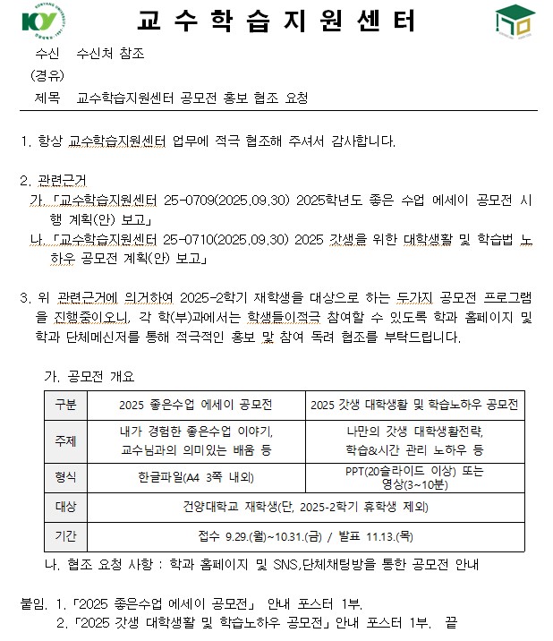 [공지] 교수학습지원센터 공모전 홍보 글의 상세내용