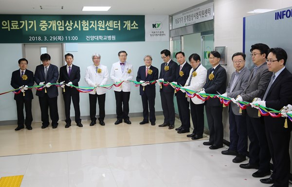 건양대병원은 29일 건양대 대전캠퍼스 죽헌정보관 3층 강당에서 정연주 건양대 총장, 최원준 의료원장 등 관계자 100여명이 참석한 가운데 ‘의료기기 중개임상시험지원센터’ 개소식을 가졌다.