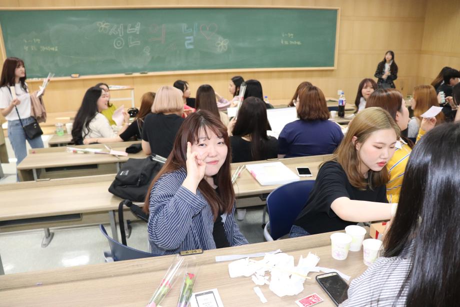간식과 장미꽃을 준비하였고 학생회에서 성년이 된걸 축하하는 편지도 한명 씩 나눠주었습니다.