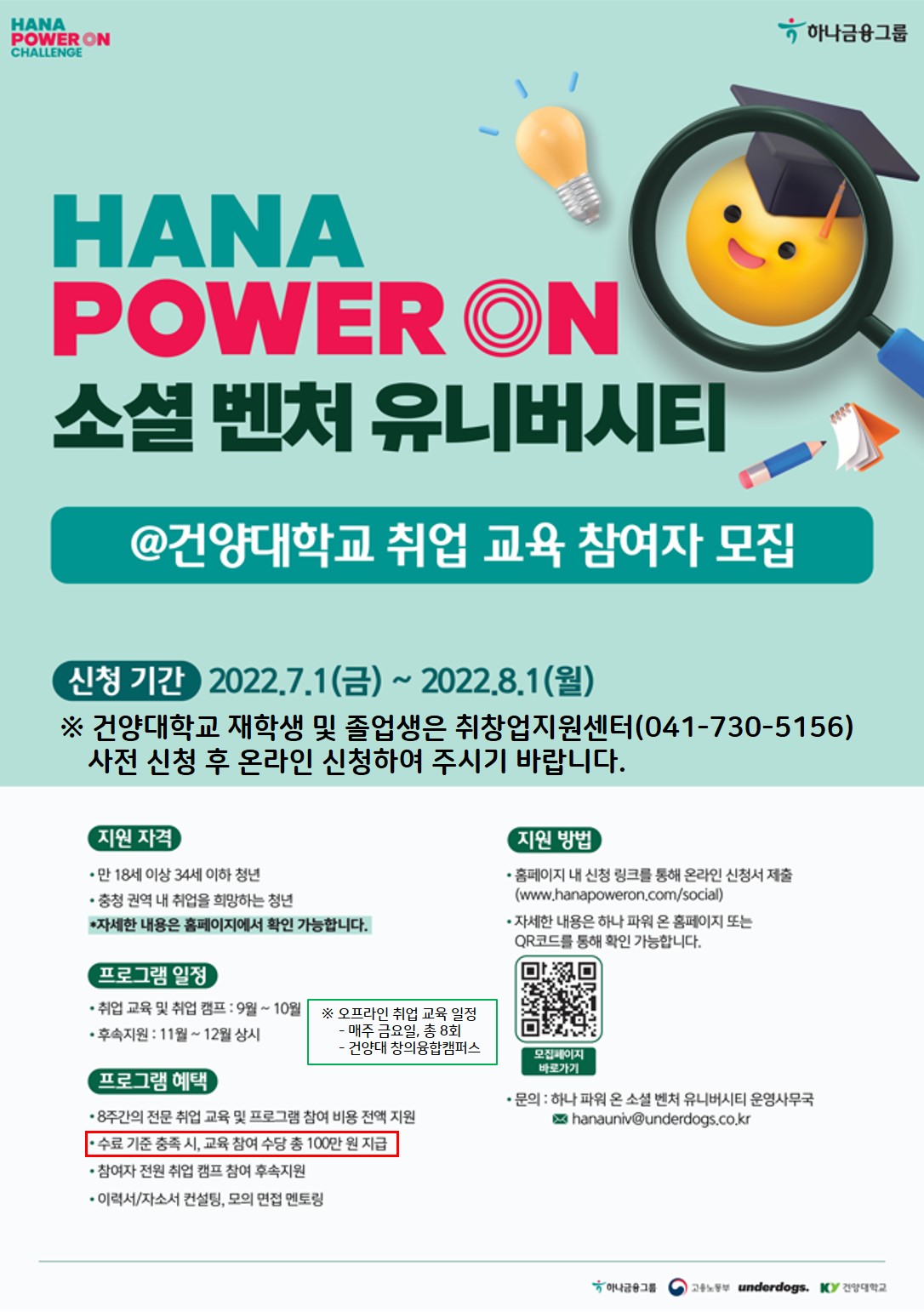 'HANA POWER ON 소셜 벤처 유니버시티' 교육에 참여하고자 하는 학생은 학과사무실로 7.26(월)까지 연락바랍니다 TEL. 042.600.8416