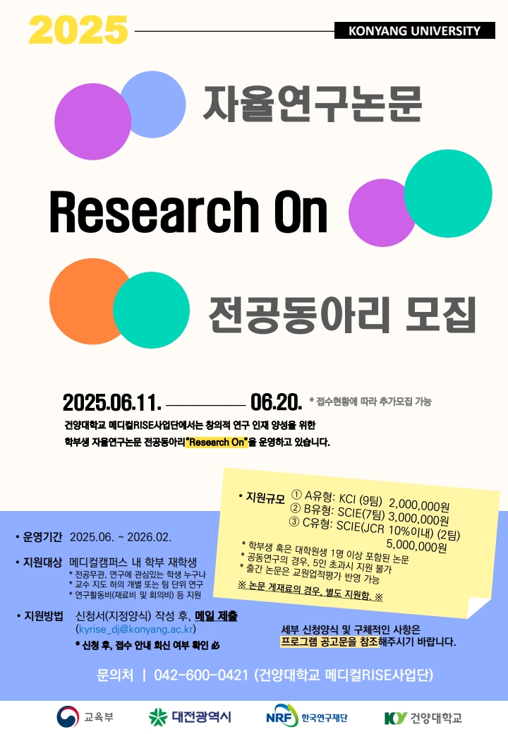 [메디컬RISE사업단] 2025학년도 Research On 연구논문 전공동아리 모집공고 글의 상세내용