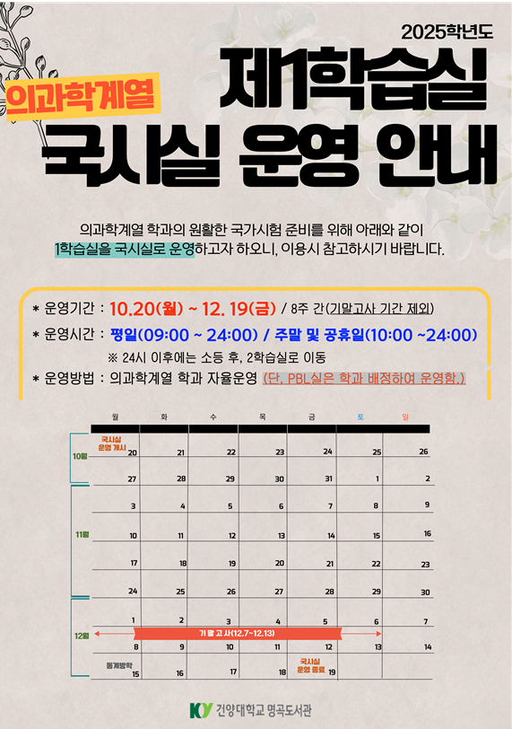 『 보건의료정보관리사 대비 국시실 운영 안내 』글의 상세내용을 확인하는 표로 제목, 부서명, 등록일, 조회, 첨부, 내용으로 나뉘어 설명합니다.