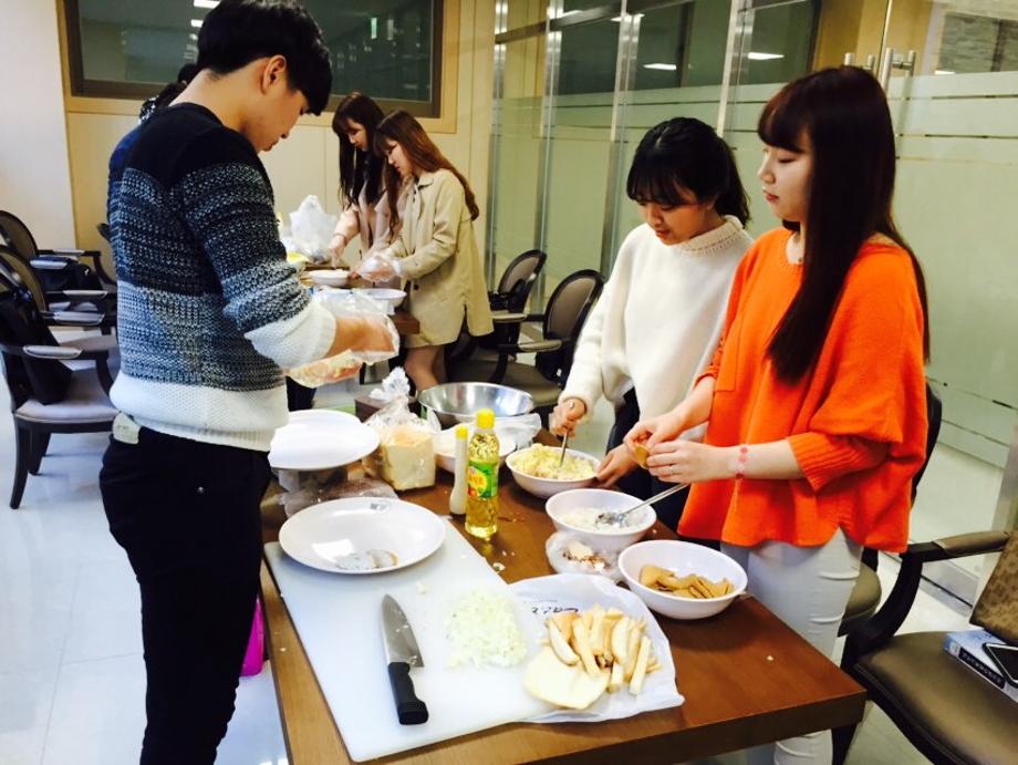 선 후배가 함께 4인 1조로 음식만들기를 통하여 서로 친밀감이 향상되었습니다. 조원들이 적극적으로 과정에 참여하여서 즐거운 시간이 되었습니다.