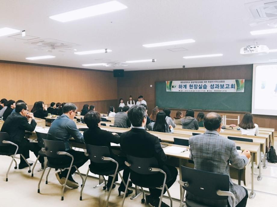 2016년 10월 28일 병원경영학과 하계방학 실습 성과 보고회가 개최되었습니다!! 참석해주신 교수님들과 학우 여러분 감사합니다. 실습을 통해 배운 것을 밑바탕으로 발전할 수 있는 병원경영학과 학생이 되었으면 좋겠습니다!!