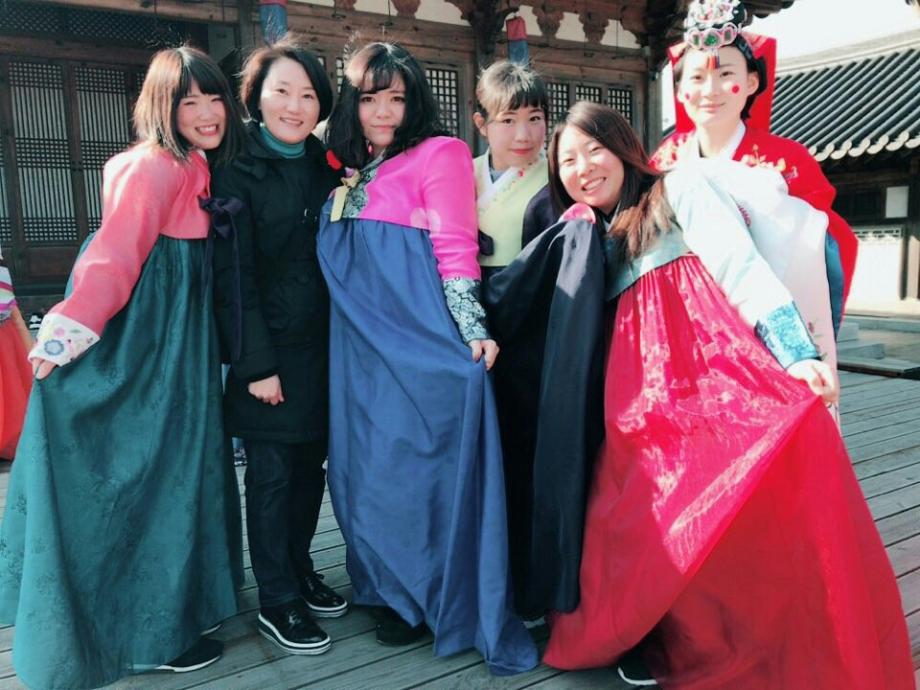 일본 학생교류 3일차에는 전주에 다녀왔습니다. 비빔밥 만들기 체험, 전통혼례교육과 한복 입기 체험, 전주 한옥마을 투어 등을 했습니다.