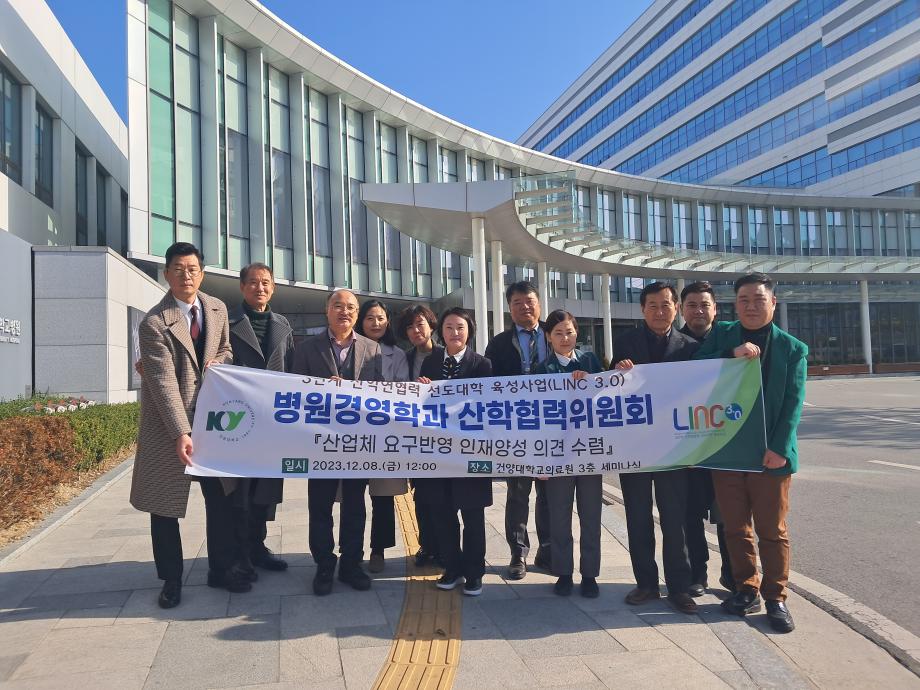 병원경영학과는 12월 8일 건양대학교의료원 3층 세미나실에서 건양대학교의료원 각 행정 주요부서 팀장님들과 '산업체 요구반영 인재양성 의견 수렴'를 위한 산학협력위원회를 개최했다.