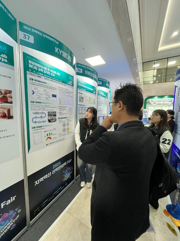 11월 15일, 건양대학교 LINC 3.0 사업단 주최로 열린 ‘2024 지역혁신 산학연협력 Fair’ 행사에 병원경영학과 2,3학년 재학생 5명이 'Lab Corps 과제' (주제: 발달장애자녀를 둔 부모를 위한 웰다잉 교육 요구도 조사) 포스터 발표에 참여하였습니다. 산학연협력 Fair는 대학 산학협력 성과 공유를 확산시키기 위해 개최되었으며, 캡스톤디자인경진대회, 창업교과아이디어경진대회, 성과전시(캡스톤디자인, Lab-Corps, Center Corps) 등등 다양한 행사가 진행되었습니다.