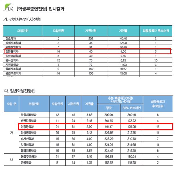 안경광학과 예비 입학생들을 위하여 입시분석결과를 말씀드리겠습니다.