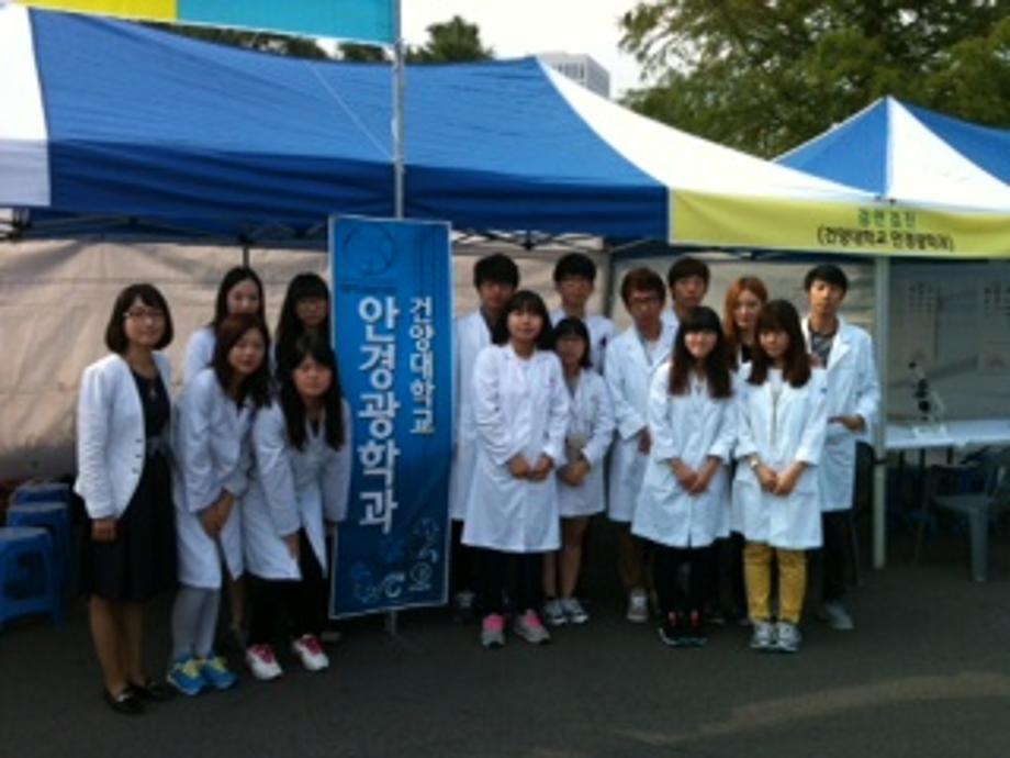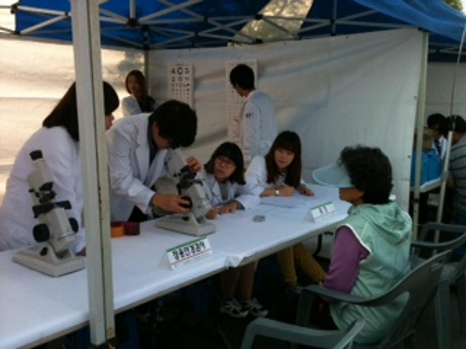 아가는 이동복지관` 행사에서 3학년 및 2학년 학생 14명이 검안봉사에 참여하였습니다.