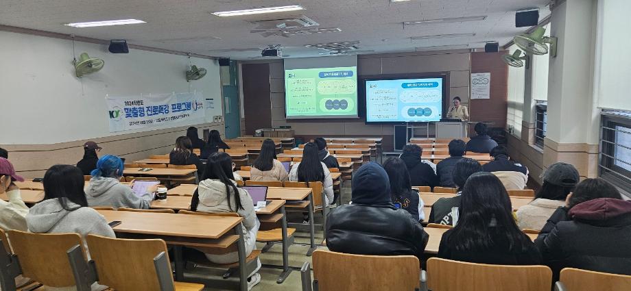 안경광학과 1학년 맞춤형 진로특강 - 일시: 2024.12.6(금) - 강사: 한국호야써지컬옵틱스 - 내용: 진로분야 비전 및 직무 내용 설명