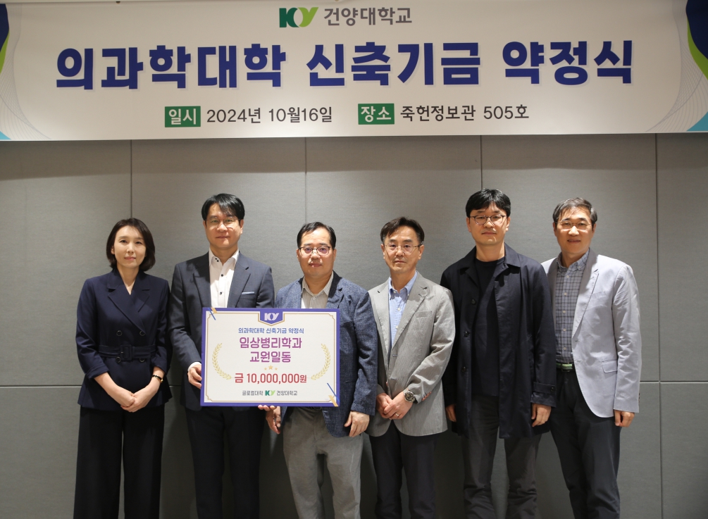 건양대학교 의과학대학 신축 건물 발전기금 약정식에서 임상병리학과 교수진, 1천만 원 상당 기부금 전달