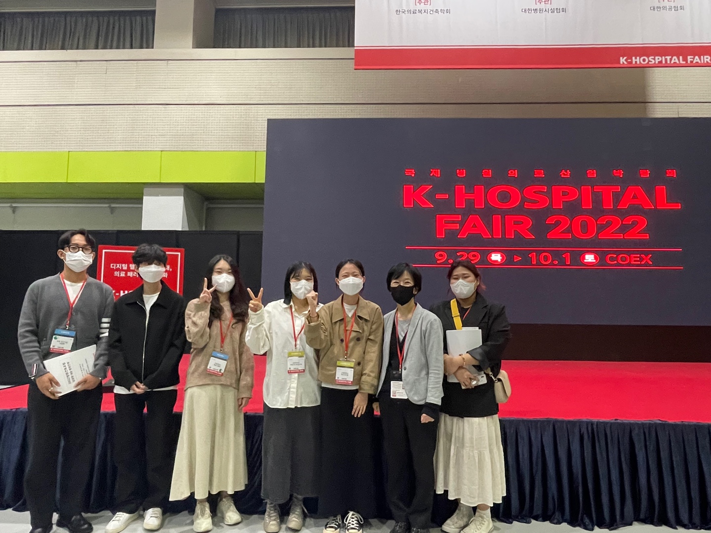 2022 K-Hospital Fair 가 09. 29~10. 01 서울 코엑스전시장에서 열렸어요. 한국의료복지건축학회에서 2022 병원건축포럼 '감염병 대응 병원건축'을 주제로 세미나를 진행했어요. 우리학과 이현진교수님이 일부 사회를 진행했고, 이승희, 오윤택, 김홍주, 이시원, 이지선, 임수영, 한지혜 학생이 참여하여 전공 역량을 높이는 기회를 마련했어요. 참석자 중에는 졸업생이 함께 하여 작은 동문모임을 가지는 즐거운 시간이 되기도 했어요. 현재 병원건축에서 일하고 있는 현신건축 김*원, 국립중앙의료원 한*비, 서남병원 허*은, 엄이건축 김*정, 아주대 석사과정 박*은 동문들이 인사를 나누었어요. 우리 함께 차분히 준비해 나가는 시간이 되기를 응원합니다~ 의료공간 화이팅!!!