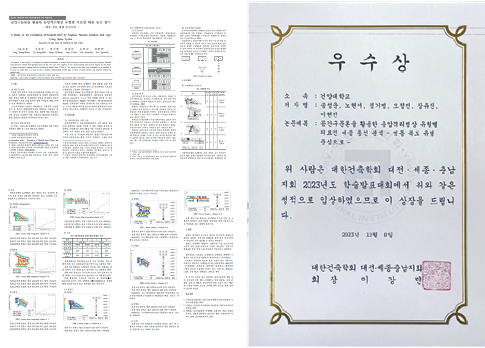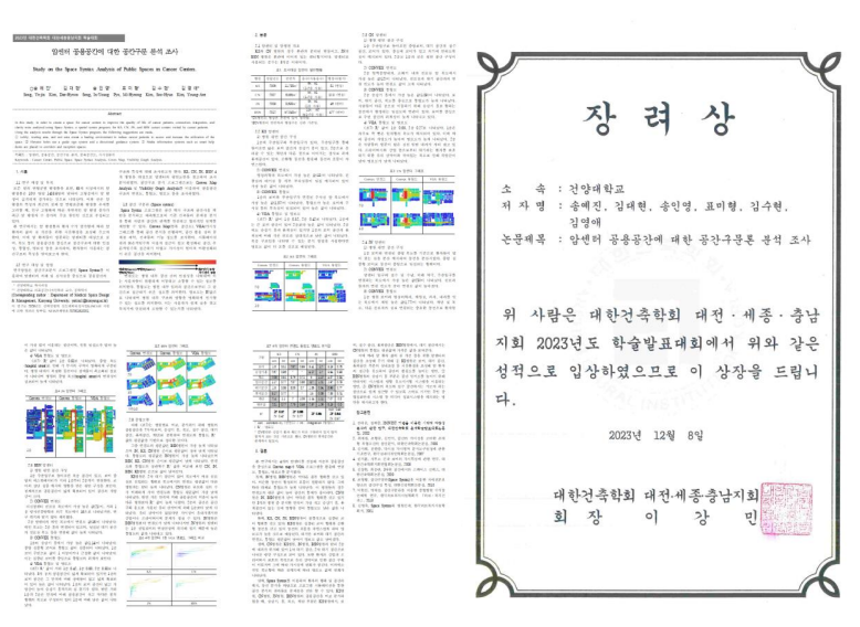 2023년도 대한건축학회 대전세종충남지회 학술대회 논문발표 장려상 수상