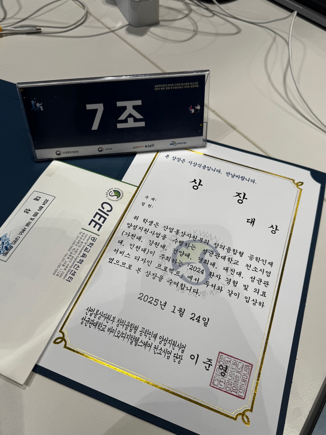 제목 | 2024 환자 경험 및 의료서비스 디자인 프로젝트에서 윤채원 학생 대상 수상 | ||||