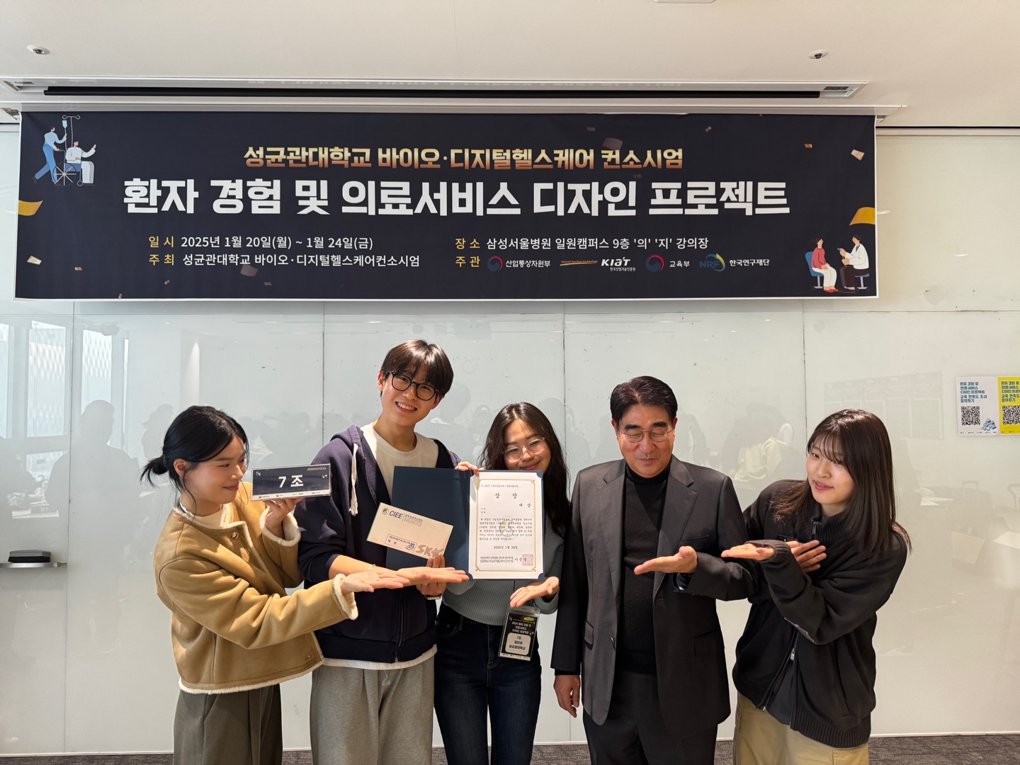성균관대학교 공학교육혁신센터에서 지난 1월 성균관대학교 삼성병원 일원캠퍼스에서 "2024 환자 경험 및 의료서비스 디자인 프로젝트" 를 운영하였어요. 성균관대학교 컨소시엄에는 7개 대학 가천대, 강원대, 건양대, 경희대, 대진대, 성균관대, 인천대이 있는데 학부생 2~4학년 총 50여명이 참가하였어요. 우리 대학교에서도 의공학과, 의료IT학과, 신소재학과 등 의료공대 학생들이 참여하였어요. 삼성병원 응급의학과 차원철과장님과 응급실 전문의 교수님, 그리고 삼성병원 관계자 분들의 강연을 듣고, 삼성병원 내 채혈실, 응급실, 안과 등을 방문하여 의료진의 설명과 함께 현장답사를 진행하였어요. 그리고 성균관대 서비스융합디자인학과 설상훈교수님이 사용자경험디자인 강의와 팀별 지도를 진행해 주셨구요. 또한 공학혁신센터 이준영센터장님과 직원선생님들의 지원과 배려로 5일간 합숙하면서 팀별로 프로젝트를 진행하는 멋진 경험을 가졌지요. 병원 답사의 경우는 1차 담사를 진행하고 공간에 대해 VR로 검토하고 확인해보는 시간도 가져 볼 수 있었구요. 우리 학과 윤채원 학생이 참가하여 해당팀이 대상을 받는 멋진 성과를 내었지요. 움크려 왔던 겨울이 이제 지나가네요. 25년 멋진 출발을 축하하며, 새롭고 아름다운 계획과 프로젝트를 시도하고 참여해 볼까요? 다시 한번 축하하며, 3월 개강이 설레고 기다려져요. 의료공간 홧팅!!!