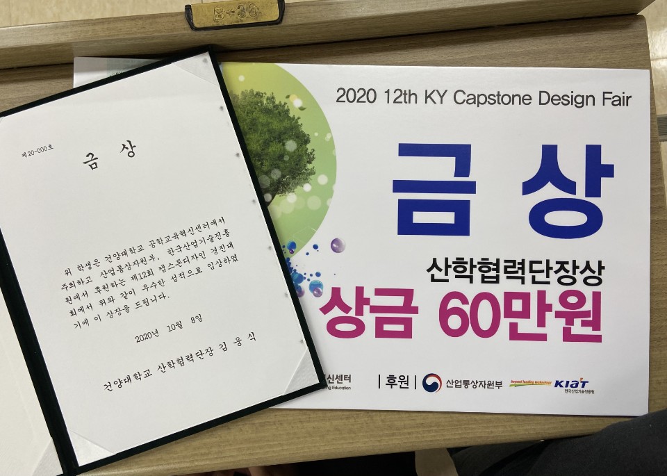 | 제목 | [수상] 2020 캡스톤 디자인 경진대회 - 금상 수상 | ||||