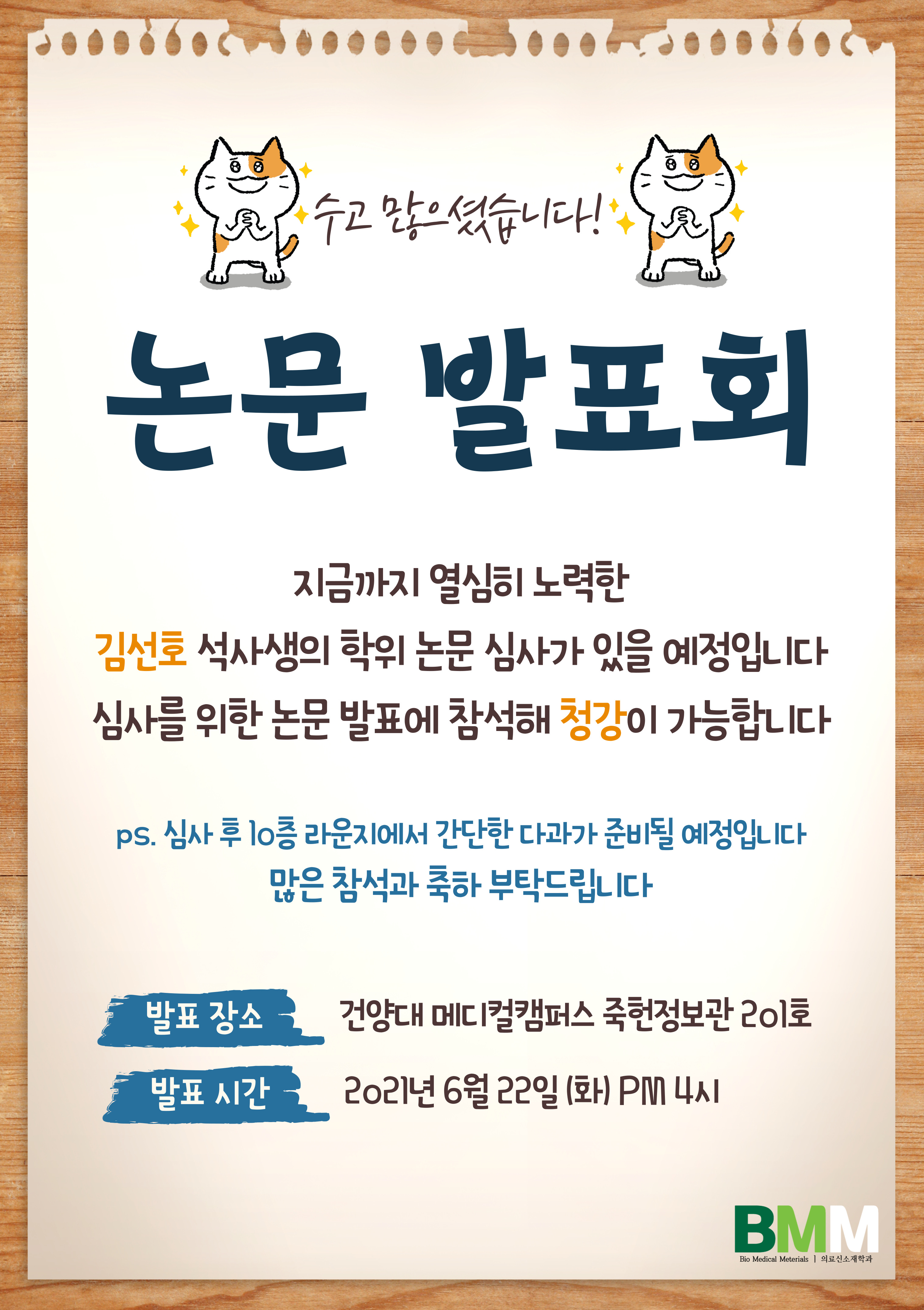 『 석사 학위 논문 발표회 실시 』글의 상세내용을 확인하는 표로 제목, 부서명, 등록일, 조회, 첨부, 내용으로 나뉘어 설명합니다.
