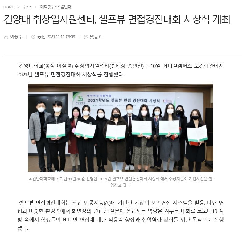 | 제목 | 2021년 셀프뷰 면접경진대회 수상 | ||||