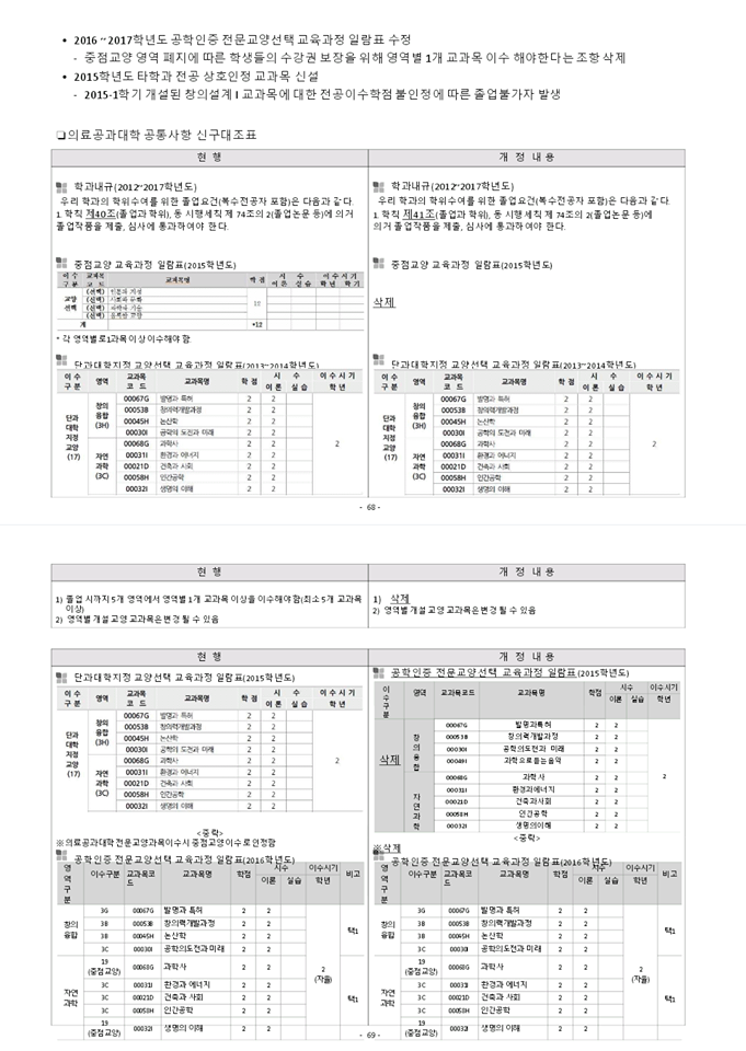 2018학년도 교육과정운영위원회 회의 결과에 따른 제약생명공학과 교육과정 및 학과내규 개정사항