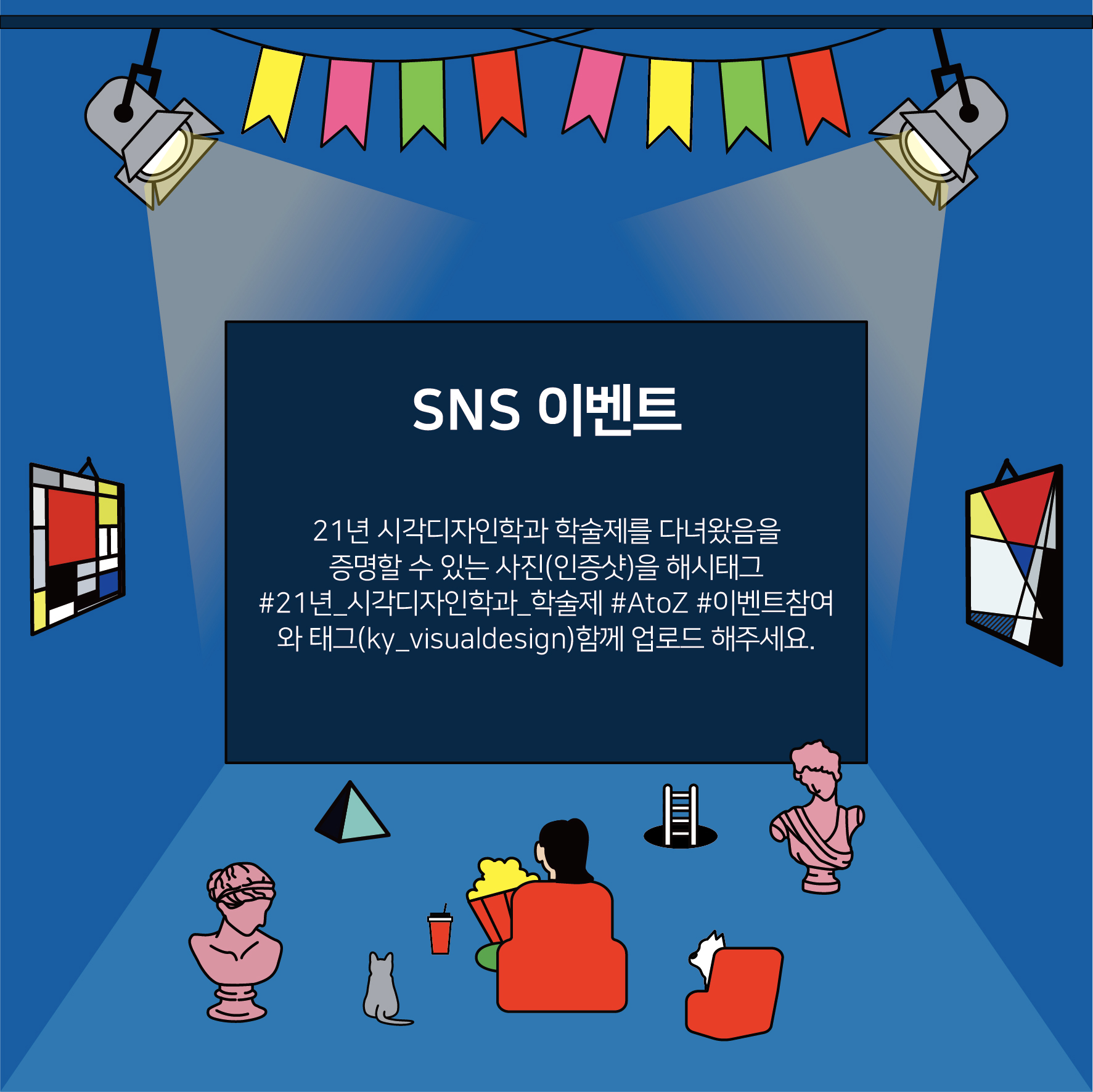 ♡SNS 이벤트 21년 시각디자인학과 학술제를 다녀왔음을 증명할 수 있는 사진(인증샷)을 해시태그 #21년_시각디자인학과_학술제 #AtoZ #이벤트참여 와 태그(@ky_visualdesign)함께 업로드 해주세요.