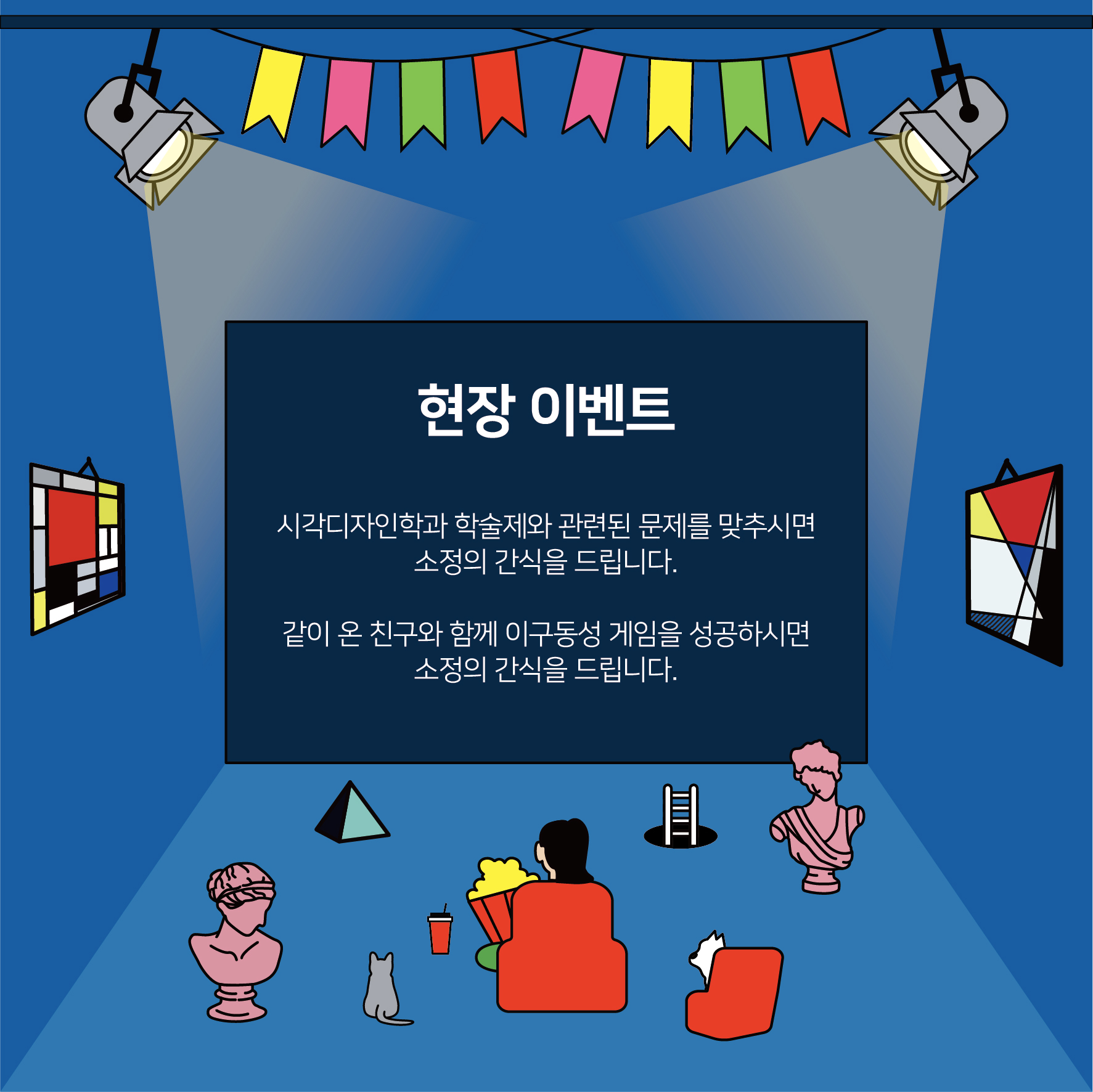 -시각디자인학과 학술제와 관련된 문제를 맞추시면 랜덤한 간식을 드립니다.