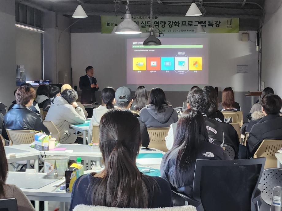- 일자 : 23.11.21(화) - 장소 : 인501호 실습실 - 강사 : 임진구 영상미술감독 (KBS아트비전) - 주제 : 방송 모션그래픽