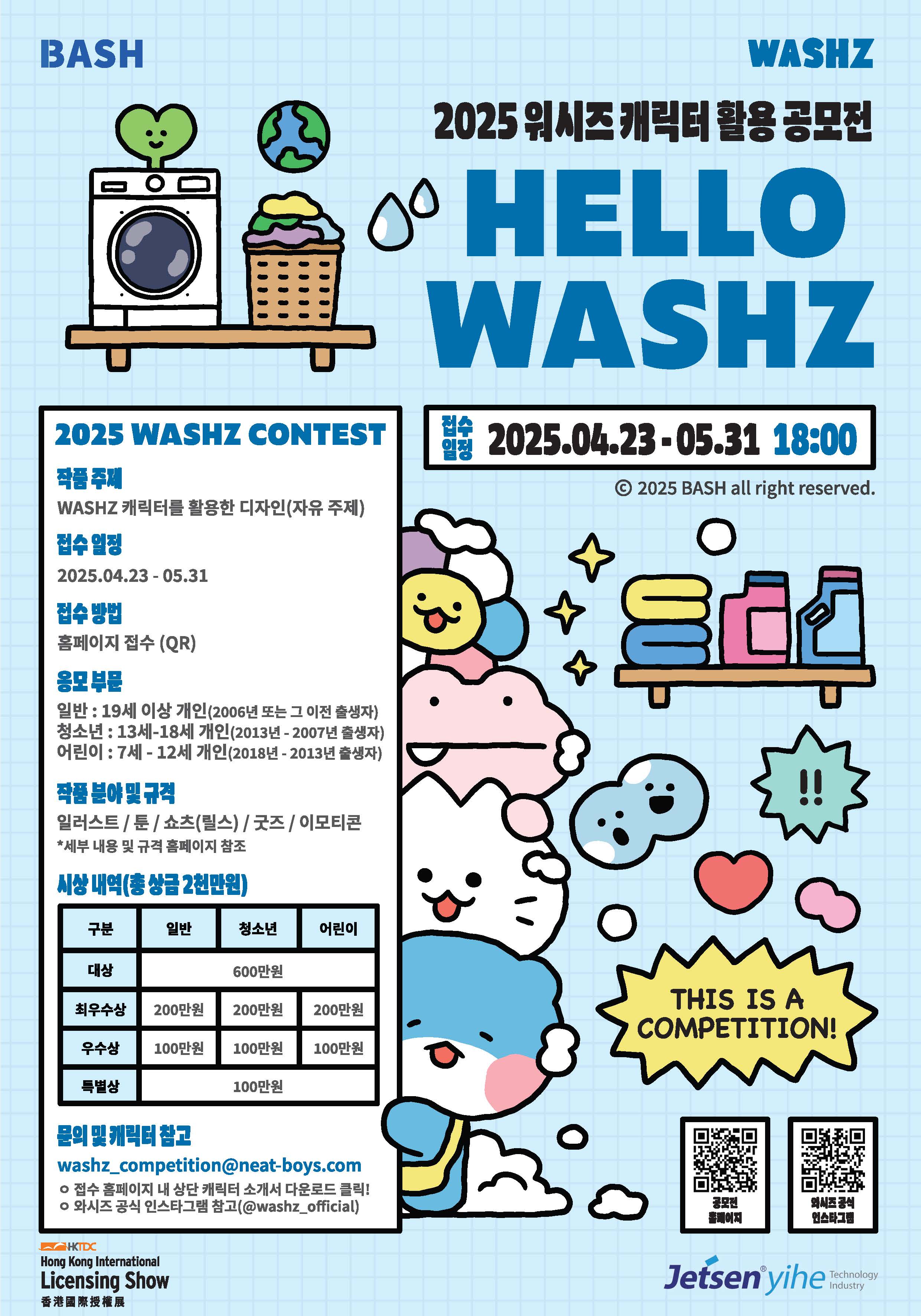 모집 일정 : 2025년 4월 23일(월) ~ 5월 31일(토) 신청 부문 : 어린이, 청소년, 일반 신청 링크 : https://www.neat-boys.com/washzcontest