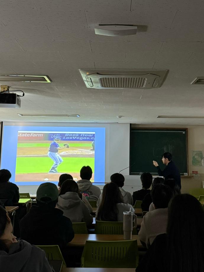 [졸업생 특강(54K sports 야구 트레이닝 센터)] 2024년도 11월11일 현재는 54K sports 야구 트레이닝 센터에서 근무 중인 17학번 김*우 졸업생의 특강을 진행하였습니다. |