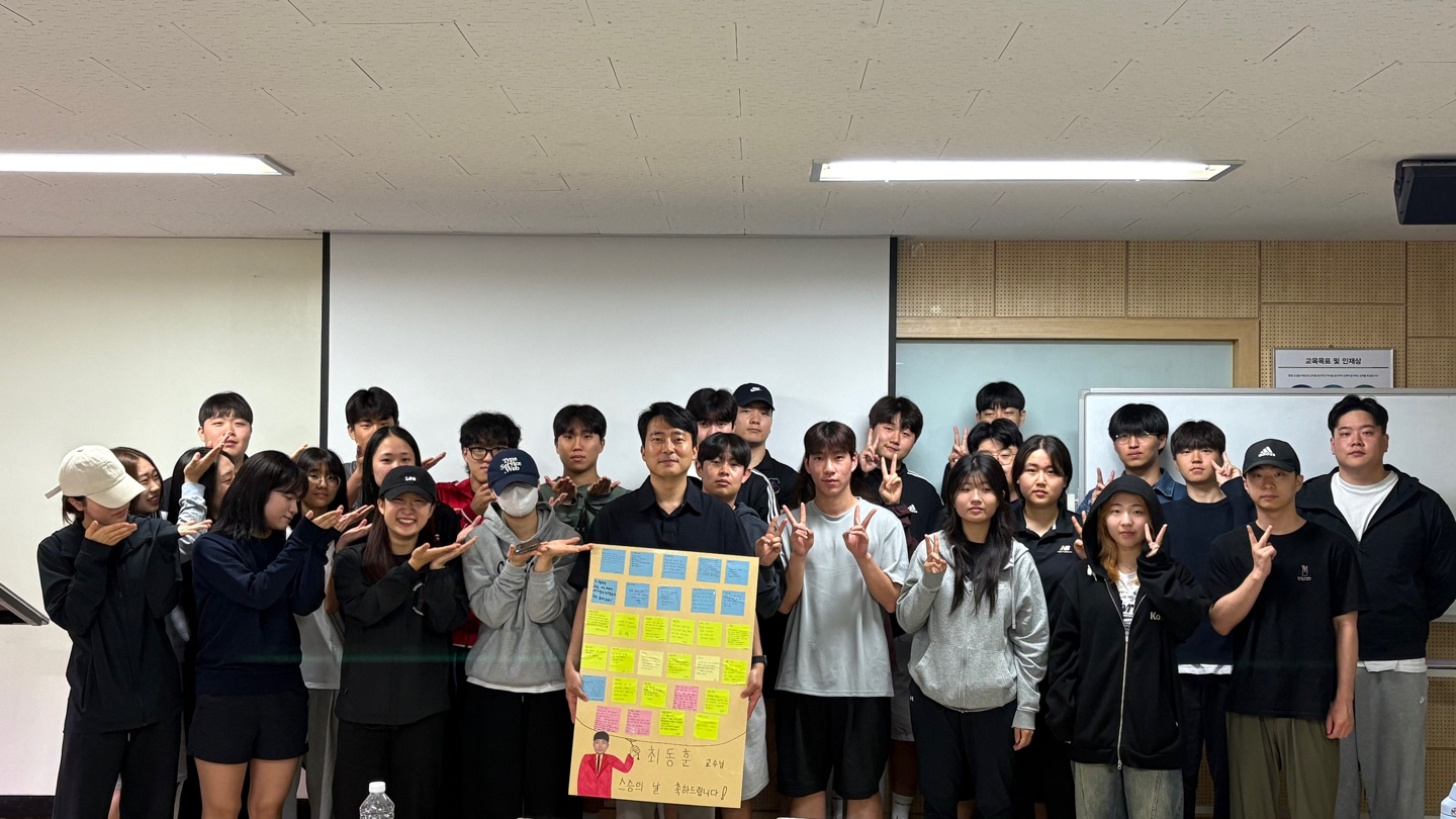 5월 15일 스승의 날을 맞아, 스포츠의학과의 자랑스러운 교수님들께 학우들의 진심을 전하는 시간을 가졌습니다. 평소에는 전하지 못 했던 말들을 롤링페이퍼를 통해 표현할 수 있는 기회가 되었습니다.