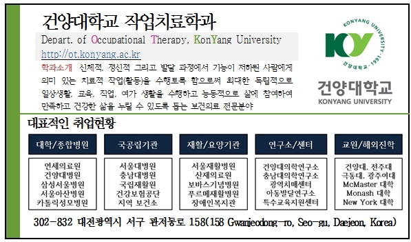학과소개 신체적, 정신적 그리고 발달 과정에서 기능이 저하된 사람에게 의미 있는 치료적 작업(활동)을 수행토록 함으로써 최대한 독립적으로 일상생활, 교육, 직업, 여가 생활을 수행하고 능동적으로 삶에 참여하여 만족하고 건강한 삶을 누릴 수 있도록 돕는 보건의료 전문분야