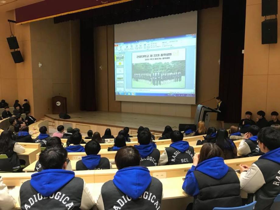 3월 8일. 개강총회, 대면식, 국별 회식이 진행됐습니다. 개강총회의 메인에는 신입생, 복학생, 편입생들의 소개가 있었는데요. 아직은 어색한 분위기 속, 신입생들의 자기소개는 서툴지만 열심히하려는 모습덕분에 선배미소가 절로 지어졌습니다. 개강총회를 마친 학생들은 잠깐의 휴식 이후 대면식 장소로 향했는데요, 대면식에서는 교수님, 직속선후배들의 만남이 이어졌습니다. 회식하면 빠질 수 없는 밥,고기,술 덕분에 어색한 분위기는 금방 사라지고 모두가 어울려지는 모습을 볼 수 있었습니다. 이번 개강총회, 대면식, 국별회식을 통해 더욱 단합하는 방사선학과를 기대하며 다음주 주말에 있는 엠티를 비롯한 다양한 행사들이 활기차고 단합된 행사가 될 수 있도록 노력하겠습니다. 감사합니다 |