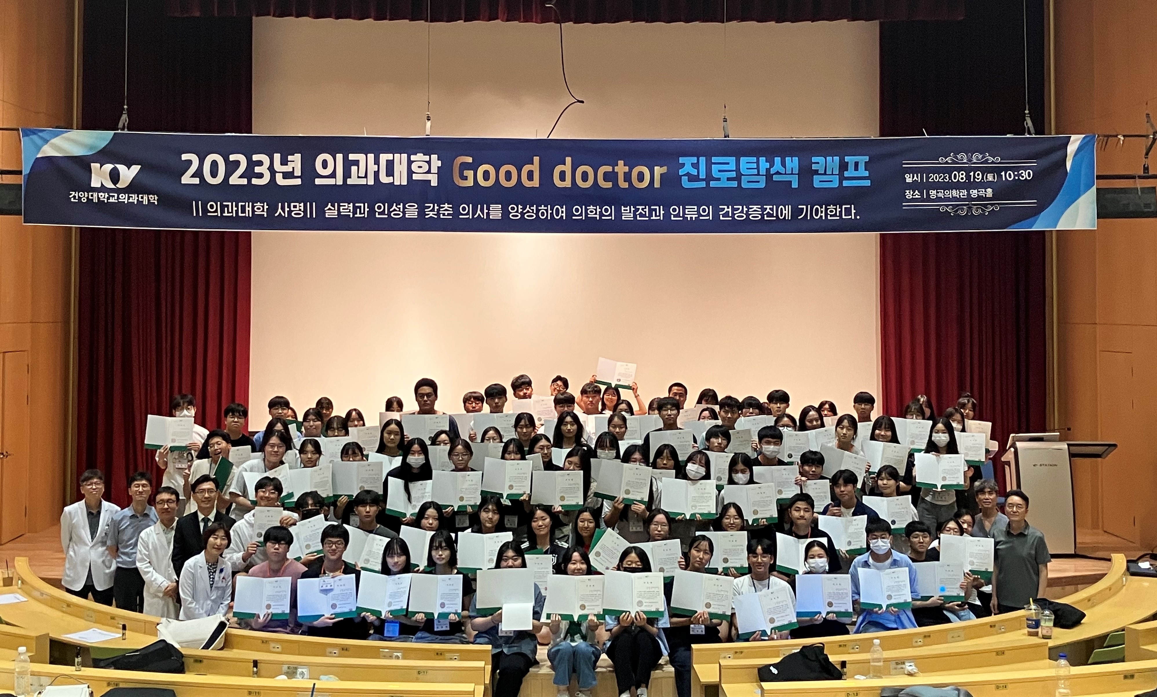 2023.08.19.(토) 건양대학교 의과대학에서 대전/충남/세종 및 자매고교 등 2,3학년 학생을 대상으로 「2023학년도 의과대학 Good doctor 진로탐색캠프」를 개최하였습니다. |