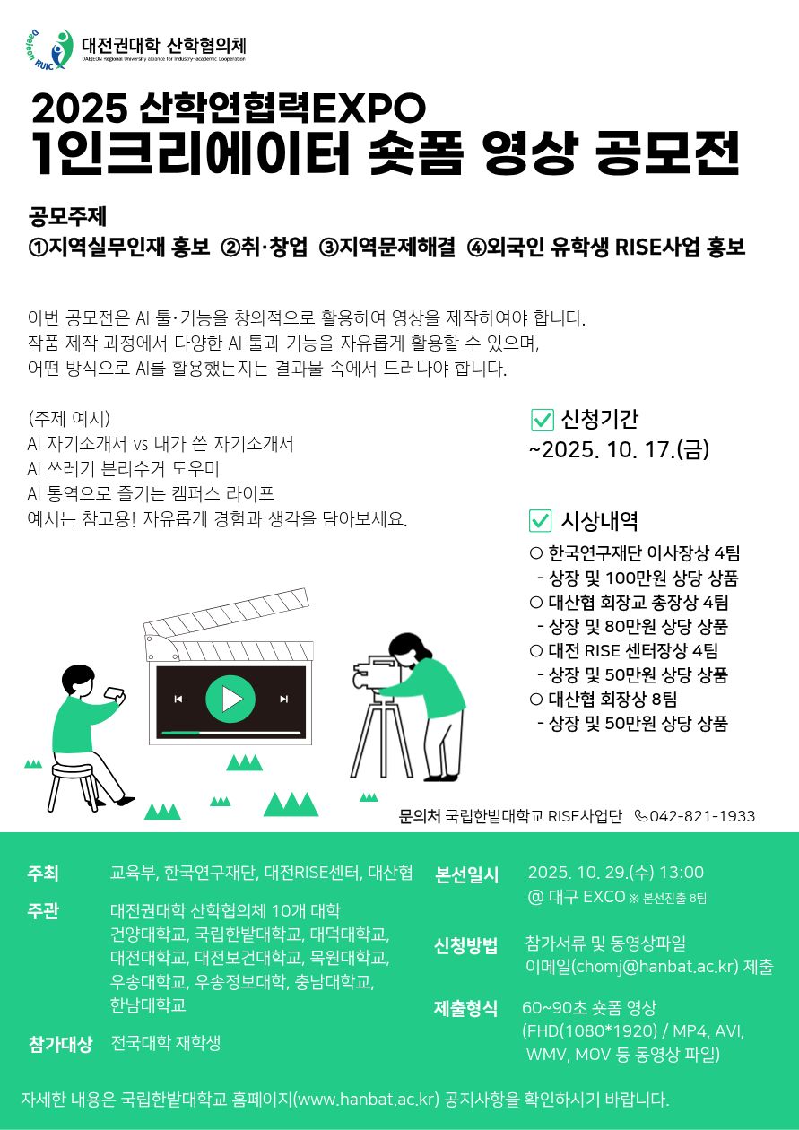 제목 | 2025 산학연협력 EXPO 1인 크리에이터 숏폼 영상 공모전 참여 안내 | ||||