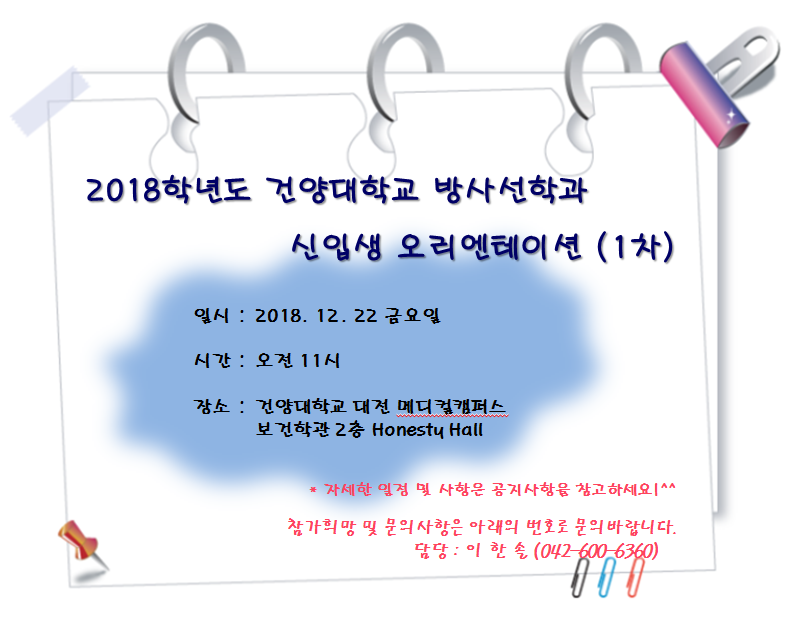 『 2018 건양대학교 방사선학과 신입생 오리엔테이션(1차) 』글의 상세내용을 확인하는 표로 제목, 부서명, 등록일, 조회, 첨부, 내용으로 나뉘어 설명합니다.