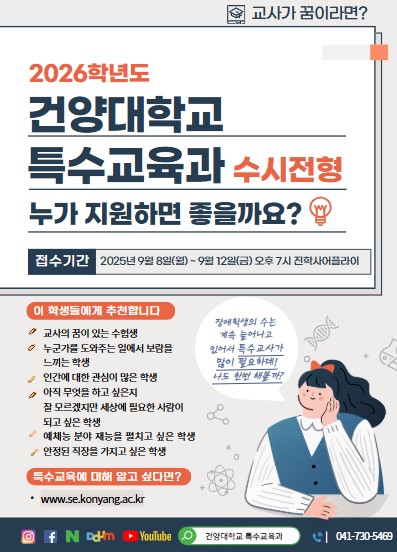 제목 [26수시] 26학년도 건양대학교 특수교육과 수시전형 정보 안내