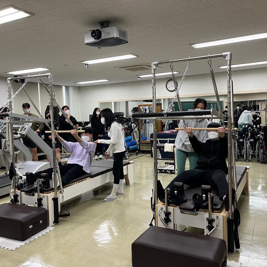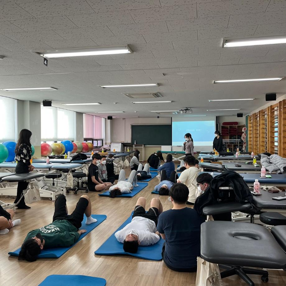 물리치료학과 학생들을 대상으로 필라테스를 통한 체형 개선과 교정, 신체능력 향상을 목적으로 하는 동아리입니다. DESINED BODY 지도자 전문 과정을 이수한 학생들이 teacher가 되어 타워리포머, 매트 등 여러 운동 프로그램을 진행합니다. |