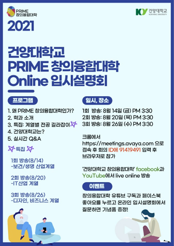 『 건양대학교 PRIME창의융합대학 Online 입시설명회 』글의 상세내용을 확인하는 표로 제목, 부서명, 등록일, 조회, 첨부, 내용으로 나뉘어 설명합니다.