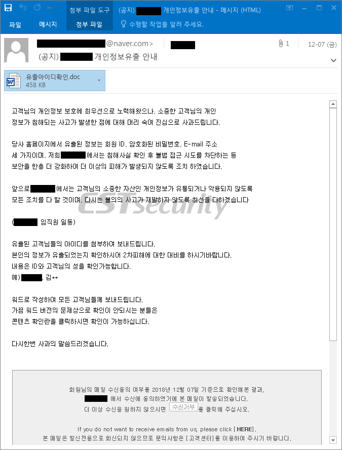 제목 | 국내 사용자를 대상으로하는 악성 이메일 공격 패턴 안내 | ||||