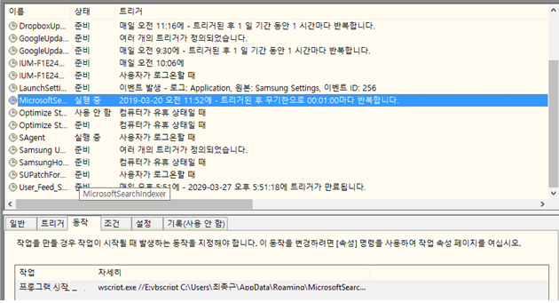[그림2] 악성코드 윈도우 작업 스케줄러 등록 화면