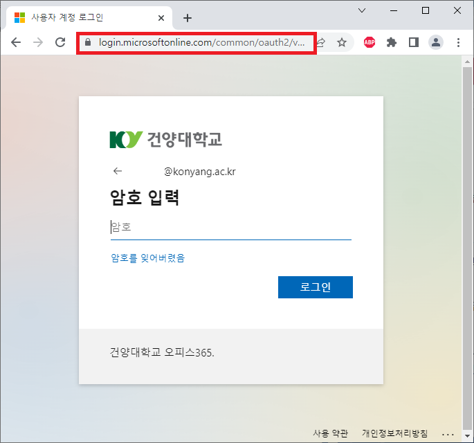[그림] 우리 대학 이메일 로그인 사이트 화면