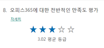 정보통신원에서는 오피스365 서비스 활성화를 위한 교육을 준비하고자 사용자를 대상으로 만족도 및 교육수요 조사를 진행하고 있습니다. 서비스 활성화 및 개선을 위한 의견 청취를 통하여 사용자가 필요로 하는 내용을 청취하고 교육 내용을 구성하여 많은 사용자들에게 주요 기능 및 활용방법을 안내드릴 예정입니다. 서비스에 대한 전반적인 만족도 평가는 3.02 점으로 집계되고 있으며 개선을 위해 많은 의견을 주시고 계신 것으로 확인하였습니다. [그림1] 오피스365 만족도 평가 교육은 Outlook 메일 및 서비스 기본 기능을 소개하는 ‘초급’ 단계와 Teams, Forms 등의 부가 기능의 활용을 중심으로 하는 ‘중급’ 단계로 구성하여 실습 위주의 교육을 계획하고 있으며 설문을 통해 접수된 ‘의견’을 취합하여 교육내용에 반영 예정입니다. 현재 진행 중인 설문 일정 및 주요 내용은 아래와 같습니다. 서비스 개선 및 활성화를 위해 많은 참여 부탁드립니다. □ 주요내용 설문기간 :19.06.07(금) ~ 19.06.14(금) 18:00 설문방법 : Forms를 통한 온라인 설문 작성 및 취합