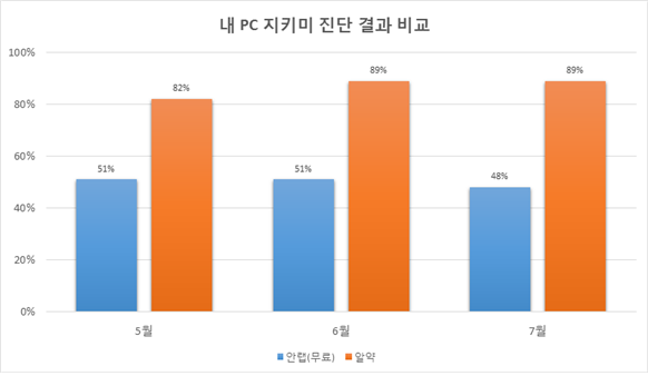 최근 마이크로소프트는 2020년 1월 윈도우 제품군(Windows7, Windows Server 2008/R2) 보안지원을 종료한다고 발표하였습니다. 이에 따라 사용자 PC의 경우 해당 기한 내에 윈도우10 운영체제로 업그레이드를 수행해야 합니다. 우리대학은 매월 세 번째 주 수요일 ‘사이버보안 진단의 날’ 수행을 진행하고 있으나 현재 운영 버전의 경우 ‘내PC지키미 협의체’에서 무료로 배포하는 버전으로 운영체제 업그레이드 수행 시 윈도우10 사용자의 진단항목 미 지원 및 진단결과 전송 관련 문제점이 발생하는 것을 확인하였습니다. 이에 정보통신원에서는 사용자PC 취약점 개선 및 신규 운영체제 진단 적용을 위하여 지난 5월부터 ‘알약 내PC 지키미’ 솔루션 도입을 위해 데모 테스트를 진행하고 있습니다.
