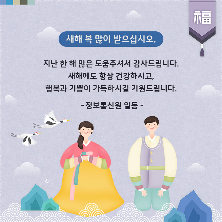 지난 한 해 많은 도움주셔서 감사드립니다. 새해에도 항상 건강하시고, 행복과 기쁨이 가득하시길 기원드립니다. 새해 복 많이 받으십시오.