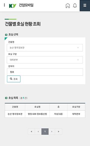 캠퍼스 건물별 호실을 조회할 수 있는 프로그램을 개발하여 모바일시스템 내에 오픈 하였음을 안내하오니 업무에 참고하시기 바랍니다.